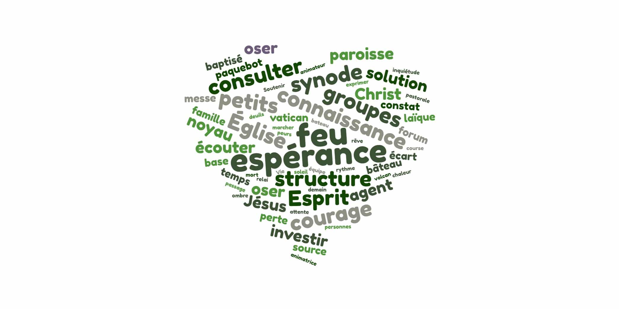 - Nuage de mots après le retour en grand groupe sur nos rêves d’Église